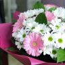 Букет с хризантемами и герберами оказался очень красивый! Цветы свежие ! Спасибо !